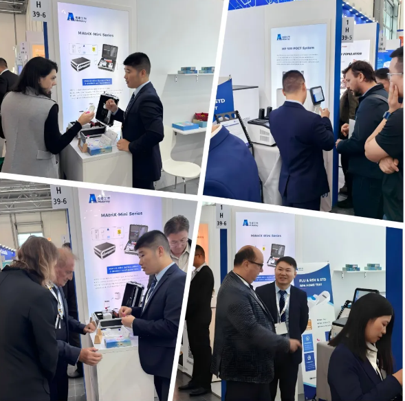 立足MEDICA五大核心展区的实验室技术与诊断板块,雅睿生物展台前始终人头攒动。本次展会,公司集中展示了涵盖即时检测(POCT)、核酸诊断、实验室自动化等领域的前沿产品与解决方案,精准契合展会聚焦的精准诊断、智慧医疗等核心热点。